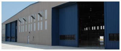 We offer a variety of aviation buildings ranging from small personal hangars to large commercial hangars. Our staff of Building Specialists can assist you in designing the building and door that is right for you.